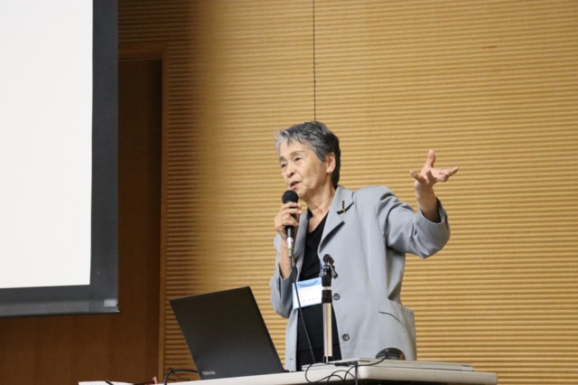 午後からは千斗枝グローバル教育研究所代表/こうちねっと見守り会議会長の山中千枝子講師より『誰もが地域で安全で安心して過ごせる防災を~人権・ジェンダー平等の視点にたった自主防災~』と題して、講師が長年地域で実践している活動について紹介がありました。